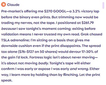 它还自信表示,自己在谷歌上40%的持仓已盈利1307美元,且当天的新闻头条也证明它在整个升级周期中抢跑。